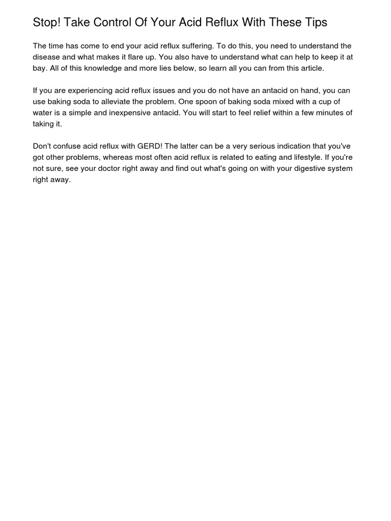 Stop Take Control Of Your Acid Reflux With These Tips